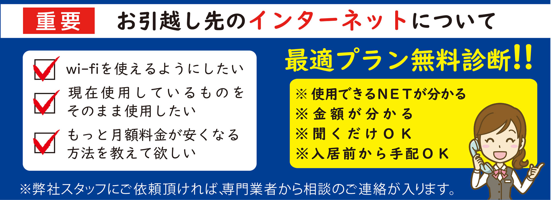 その為、ピタットハウス北岡崎店では、どんなインターネットが設置可能か?一体いくらかかるかなど、無料で診断が可能です。
